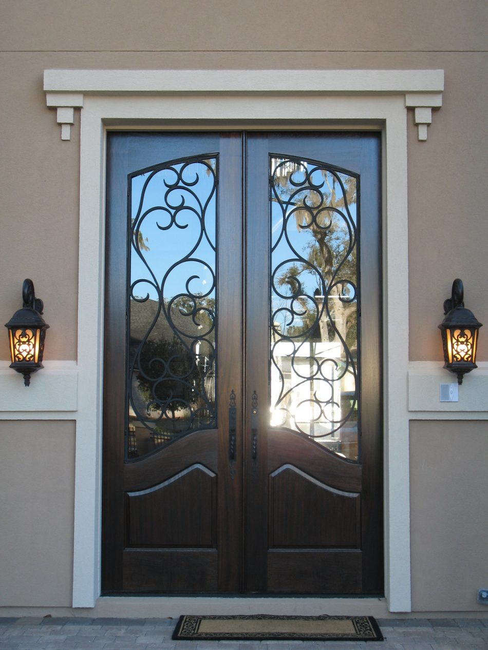 Красивые металлические двери со стеклом устанавливаются в Белоусово на входах в загородные дома, коттеджи, рестораны, магазины. Если на лестничной площадке предусмотрена тамбурная прочная дверь, тол остекленную модель можно купить и для квартиры. Для увеличения уровня противовзломной защиты зона остекления закрывается кованой декоративной решеткой, соединенной с железным листом внутри створок.